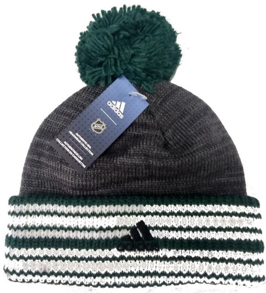 Show your Wild pride after the game-winning goal. NHL Licensed Minnesota Wild Stocking Cap is made by adidas. The hat is gray with green and white stripes at the bottom. The applique of the Wild Logo is at the center of the cuff. The reverse side has the adidas symbol. The hat is made of 100% acrylic and is OSFA. The top has a green pom. Officially licensed. Color: Gray/Green/White/Black/Red/Gold. 11FJZ-VWILD- One size fits most. Officially licensed by the NFL