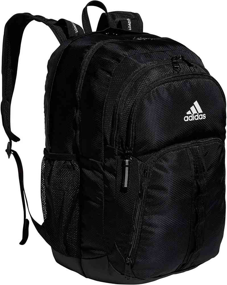 Adidas Prime VI XXL 5 Pocket Backpack With LoadSpring Straps - Various Colors. When you need a lot of space, this extra-large backpack from adidas has you covered. made of durable, woven material, it has plenty of pockets and a laptop sleeve to keep you organized. LoadSpring shoulder straps make carrying heavy books and gear more comfortable. The large pockets are designed to hold up to a 16� laptop computer. Made from recycled materials.- 5 outside zippered pockets, and internal zippered organization pocket