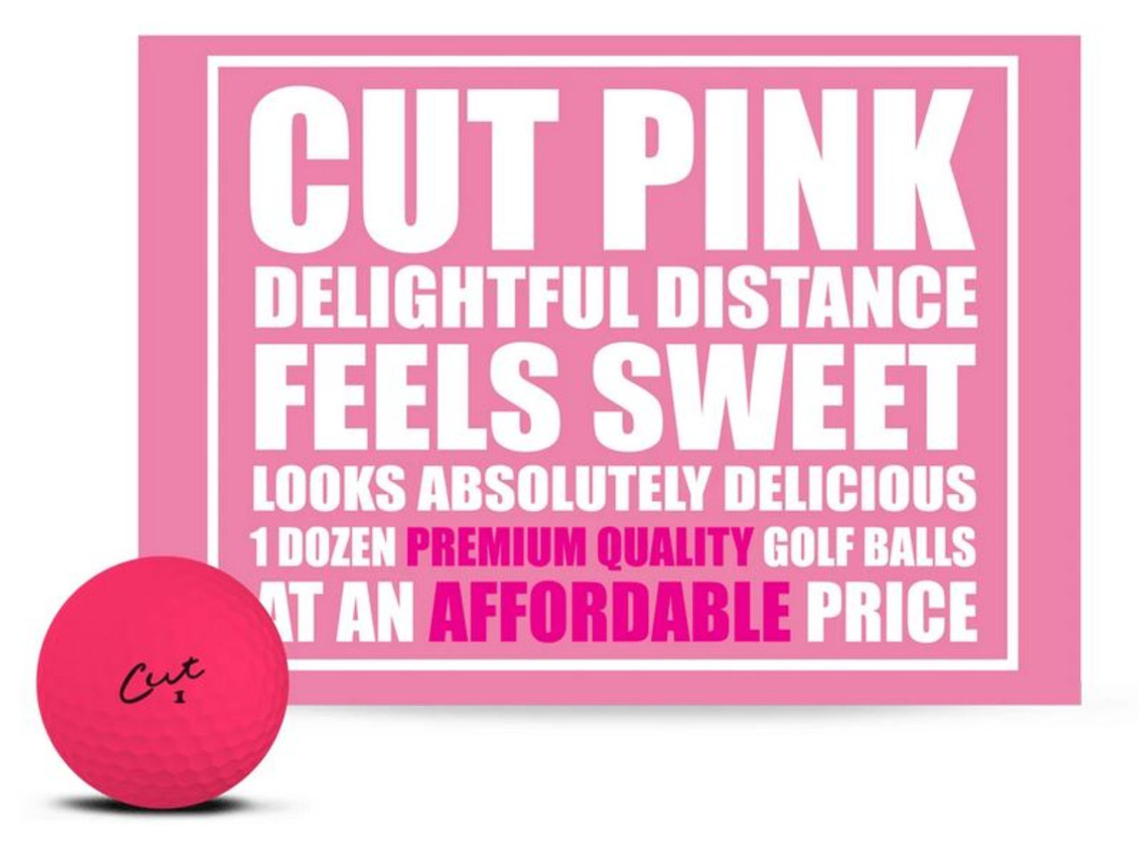 Cut Golf Cut Matte 3 Piece Ionomer Pro Golf Balls (12 Pack) ? Pink. The Cut Matte line is for the player looking to add a little color to their game. Designed with a soft core and durable cover, Cut Matte Orange will deliver accuracy and excellent green-side control.- Bright Pink Ionomer Cover Matte Finish