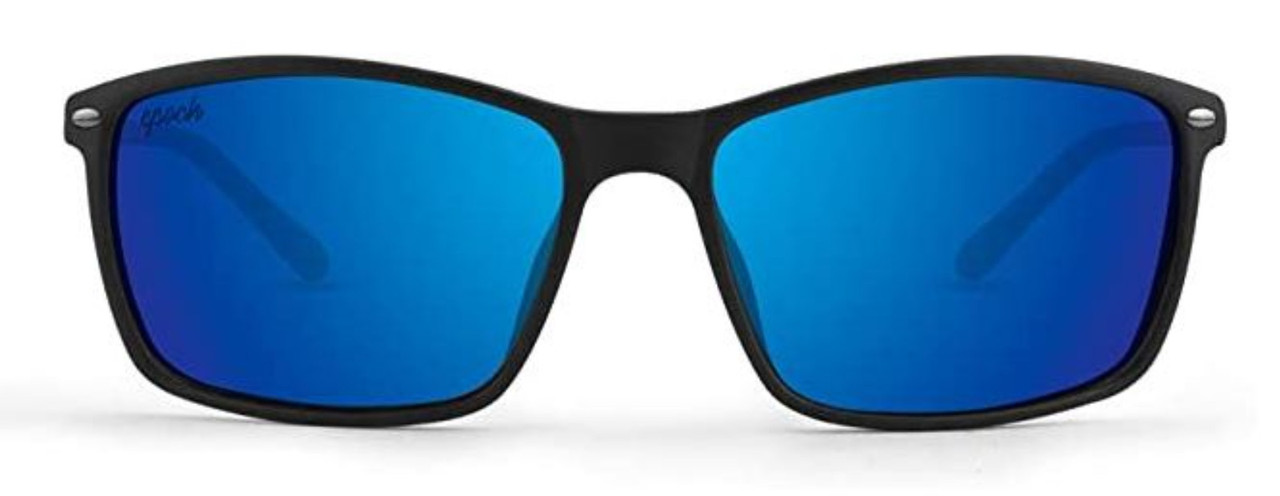 Epoch Eyewear Murphy Sport Sunglasses ? Black Frame & Polarized Blue Lenses, EE8953. The Murphy sunglasses are Epoch's latest lifestyle eyewear with classic looks and light frame. The lenses are shatterproof polycarbonate and 100% UVA & UVB protective. The Murphys feature a super light frame for comfort and Epoch script logo etched into the lens. Mirror lenses are constructed by applying a reflective coating to a smoke lens base. These unique products deliver the same protection as smoke lenses but have the added benefits of enhanced color perception while reducing glare -- all due to the addition of the color reflective coating. Ideal for full-sunlight, snow, and water-reflective conditions. Light transmission 10-13% depending on reflective coating applied. Epoch Eyewear is a Veteran owned and operated company. Epoch is proud to be a part of the Veteran community and build a company that provides jobs and great products..- Black Frame with Polarized Blue Mirror Lenses