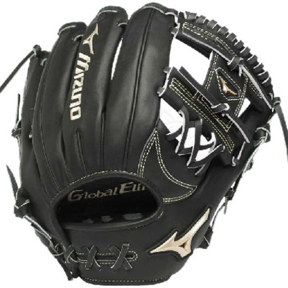 Mizuno Global Elite VOP GGE52VAXBK Infield Baseball Glove, 11.75. 312027.RG90.12.1175. The Mizuno GGE51VBK Global Elite VOP Baseball Glove is made using their advanced Vibration Oil Processing (VOP) technology which begins with softening the fibers of the leather then hand conditioning each piece from the inside. Vibration processed, hand oiled leather. Roll Welting - Increases structure and support throughout the fingers. Rugged polyurethane patch. cushioned wrist pad for secure fit. 11.75" Infield. Axiom Cut. Deep III Web. Glove bag included. Right Hand Throw. Sport: Baseball. Color: Black. 312027.RG90.12.1175- Vibration processed, Japanese tanned hand oiled leather