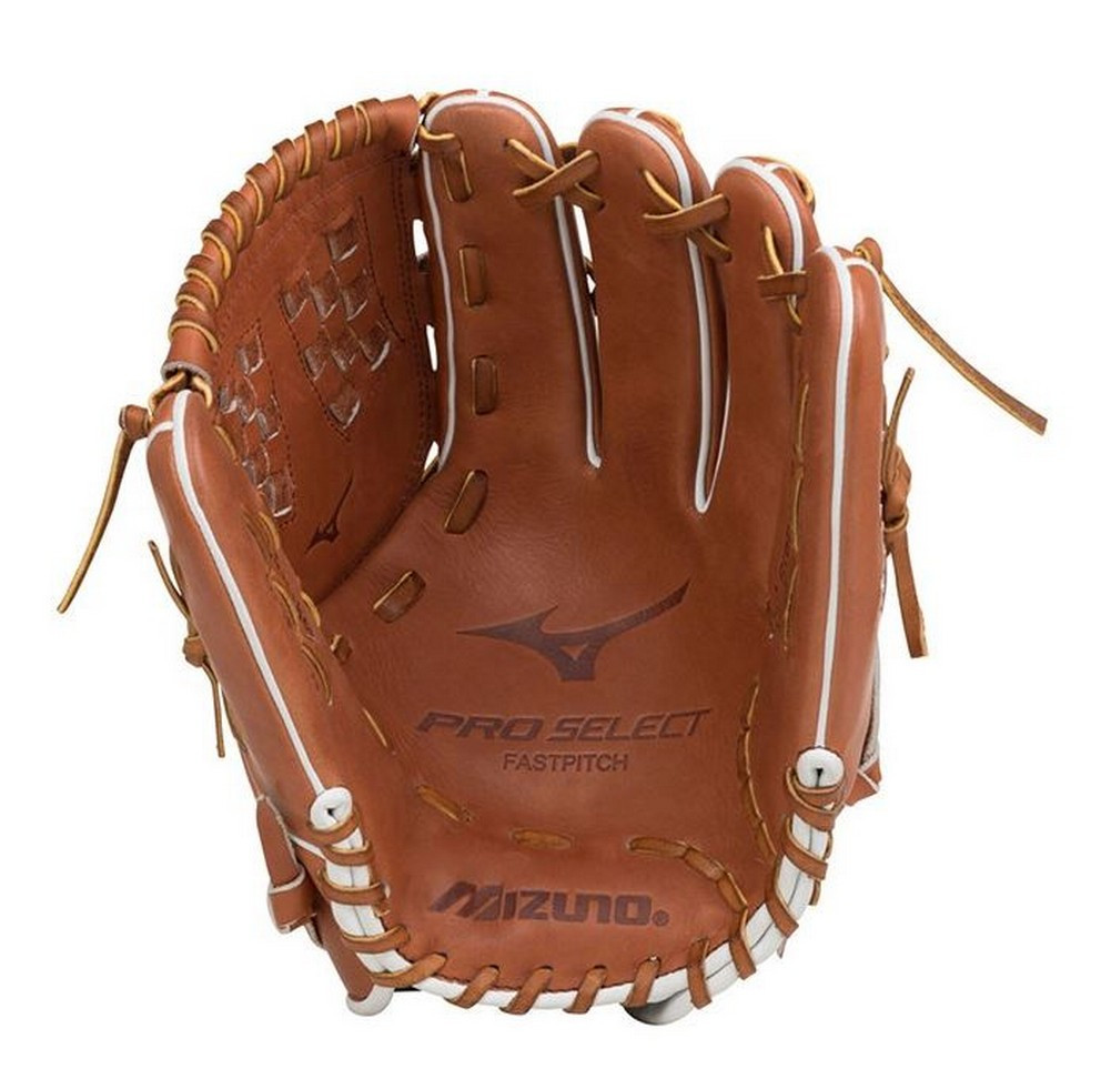 This Softball Specific Pattern Outfielder/Pitcher Glove from Mizuno. The new Mizuno Pro Select Fastpitch Softball Glove series features rugged, rich, and naturally pre-oiled Throwback leather that has a great broken in feel and stays extremely durable year after year. Each Mizuno Classic Fastpitch Softball Glove also comes with an UltraSoft palm liner that creates a soft and professional feel and finish. The Fastpitch Mizuno Classic models are all gender engineered patterns built specifically for the female softball player. The glove features premium Steerhide Leather, an Elite Steersoft Palm Liner, an Arched Tartan Web, and a Thumb Slot. These attributes are built ready to have any fielder defend their way into all star consideration. Limited One Year Warranty. Colorway: Tan/White. 312513.RG80.15.1250 RHT- 12.50 Inch Pattern Arched Tartan Web Conventional Open Back. Pitcher / Outfielder Glove