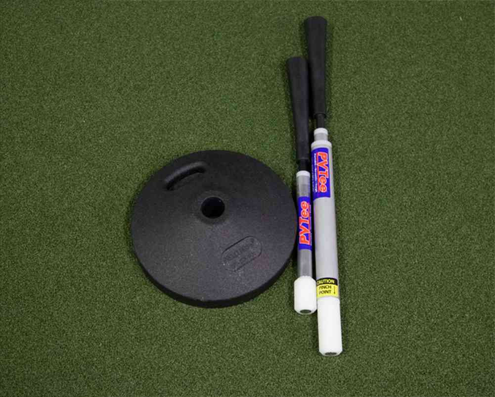 ProMounds PVTee Practice Batting Tee Baseball Softball, Black/Silver. TA2401. The PVTee utilizes a unique magnet to allow the Tee to break down in one second and be put in the equipment bag for travel. It has a weighted base that holds the tee in place, and its flexible pivot joint allows the impact of a mis-hit to be realized in the pivot joint, not the other tee components. The flexible pivot joint also takes the impact away from the batter's hands and helps eliminate bat damage. The flexible pivot joint will have the tee back to the upright position before you are ready to put the next ball on. The flexible pivot joint takes the impact away from the bat as to not damage the bat on "miss-hits". Allows for continuous training by being virtually impossible to tip over. Made from the highest-quality materials, the durable, long-lasting PVTee is designed to withstand the wear and tear of repetitive use. The PVTee's patent-pending design was lab tested with over 4,000 mis-hits, showing no wear and tear. ProMounds PVTee is a revolutionary product in its design that will allow young hitters more time working on mechanics and less time picking the tee up when they hit it over. Dimensions: Height adjusts from 27" to 47". Made in USA.- Flexible pivot joint allows the impact of a mis-hit to be realized in the pivot joint, not the other tee components. The flexible pivot joint also takes the impact away from the batter's hands and helps eliminate bat damage. The flexible pivot joint will have the tee back to the upright position before you are ready to put the next ball on