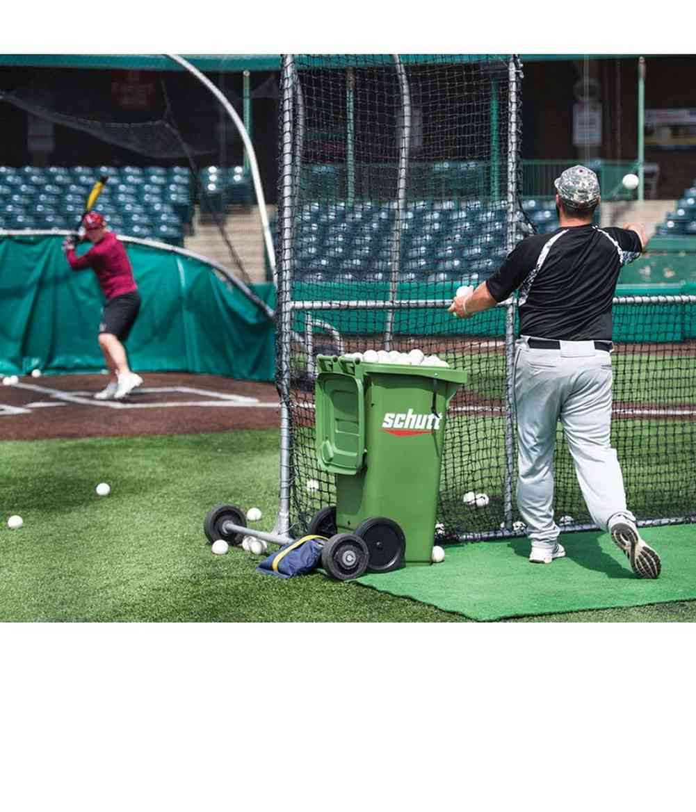 With the BP barrel, there's no more throwing to one batter then shagging balls to do it again. You can simply wheel the BP Barrel to the mound loaded with up to 20 dozen baseballs or 8 dozen softballs and throw to multiple hitters. The unique deign includes a spring-loaded shelf that raises and lowers in height with the weight of the balls so you don't have to bend over to dig balls out of the barrel.- Spring loaded shelf inside