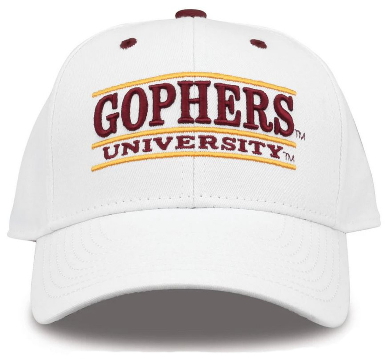 The Game University of Minnesota Golden Gophers Embroidered Bar Adjustable Snapback Cap ? White, G2036-000087. Prove your worth as a University of Minnesota Golden Gophers fan with this awesome snapback adjustable hat from The Game! It's got 6 total panels with embroidered University graphics and the ?Gophers? team name across the crown. The adjustable snapback closure allows for easy adjustments that ensure the perfect fit every time. G2036-000087- Embroidered University graphics and team name across the crown