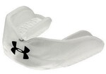 Under Armour ArmourFit Mouthguard Multi-Sport Adult/Youth R-1-1300. ArmourFit material molds to teeth for a tight, comfortable fit. We've all got to keep our teeth safe and clean. But with today's technology its great to be able to breathe and talk while you're keeping those teeth safe. Under Armour's ArmourFit strapped mouthguard allows you to breathe and talk with ease. ArmourFit mouthguard is microwaveable, boilable and re-fittable. Provides a dentist-like fit, is chew resistant and is easy breath/easy talk. No tether included. For all contact sports. Meets NFHS regulations. $32,000 Dental Warranty. Made in the USA. Several Color Options. R-1-1300- Made of latex-free material. Not recommended for use with braces
