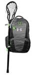 The Lacrosse back pack from Under Armour features a large main compartment to fit lacrosse helmet and equipment along with exterior webbing loops for lacrosse sticks. Includes a side water bottle pocket, a large gusseted laundry pocket and a front H2O repellent UA Storm valuables pocket.Additional Information
