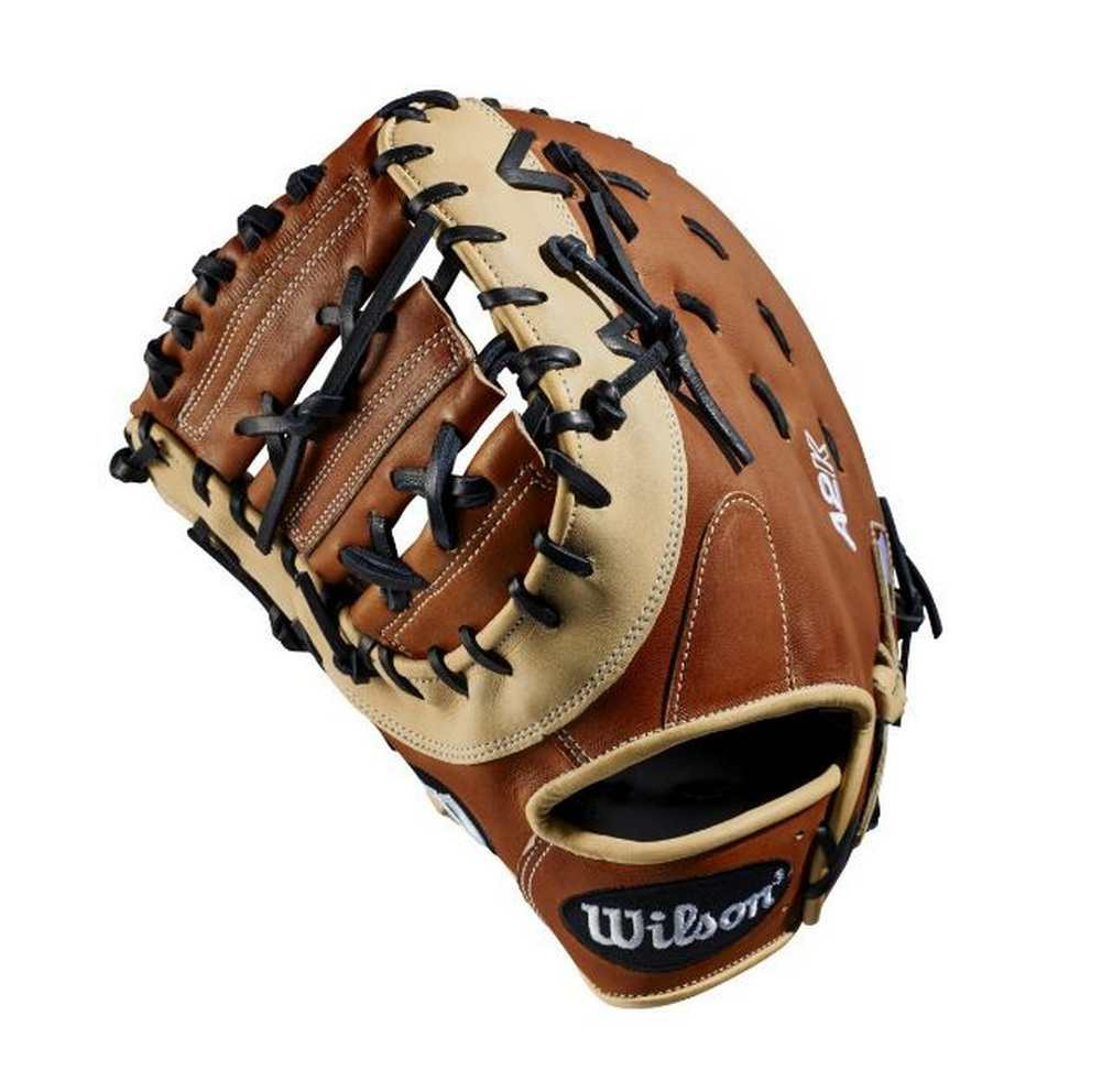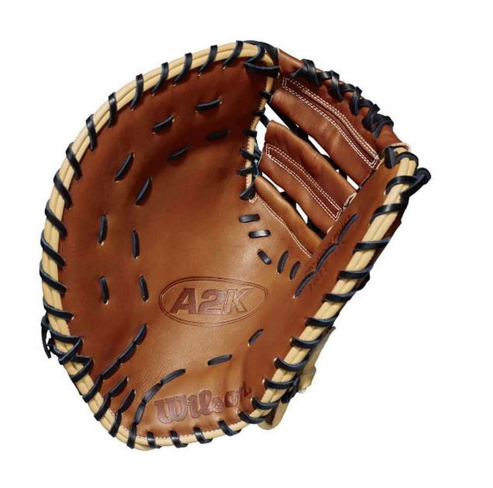 The A2K 1617 is Wilson's largest first base mitt, at 12.5". It comes with a single break, Double Horizontal Bars Web, and Copper, Blonde and Black Pro Stock Select Leather. The A2K, Wilson's most premium series of baseball glove, is made with Pro Stock Select leather chosen for its consistency and flawlessness -- the ideal leather for a glove. Glove Master Craftsman Shigeaki Aso designs all gloves in the A2K line with Rolled Dual Welting to provide long-lasting shape, Double Palm Construction for maximum pocket stability and extra shaping from our craftsmen so all A2Ks break in quicker and last longer.- Double Horizontal Bar Web