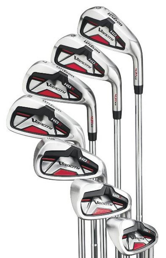 Following Wilson?s long tradition in this category, the Wilson Velocity HDX iron set features 5, 6, 7, 8 and 9 irons long with a pitching and sand wedge, to meet every challenge head on. Our latest offering combines the game's latest technology and Wilson's proven dedication to quality to create the best clubs ever. The clubs feature low torque steel shafts, which provide better contact and accuracy. The large sweet spot on each club provides improved accuracy on those off center shots. Whether you are a beginner or experienced golfer the Wilson Velocity HDX Irons can help improve your golf game. Flex: Regular. Color: Black/Silver/Red. WGGC49800- Wilson Velocity HDX Uniflex Iron Combo Set. Includes: 5-9 Iron, Pitching & Sand Wedge. Flex: Regular Uniflex