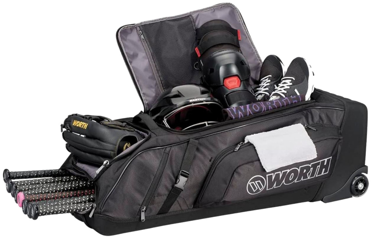 Worth Deluxe Wheeled Slowpitch Softball Multi Compartment Equipment Bag – Black